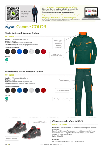 EN ISO 20345:2011 S3 SRC HRO GAMME VÊTEMENT DE TRAVAIL