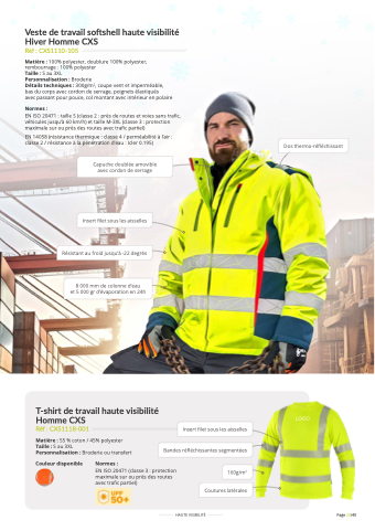 EN ISO 20471 : taille S (classe 2 : près de routes et voies sans trafic,